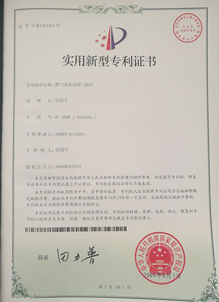公司參與《IC卡膜式燃?xì)獗怼?、《切斷式膜式燃?xì)獗怼沸袠I(yè)標(biāo)準(zhǔn)制定,主草了《智能燃?xì)獗黼姍C(jī)閥》“浙江制造”標(biāo)準(zhǔn),先后獲得專利37項(xiàng),其中發(fā)明專利6項(xiàng)。主導(dǎo)產(chǎn)品包括球閥系列、五代快關(guān)閥系列、螺桿閥系列、工業(yè)內(nèi)置閥系列、工業(yè)外置閥系列和控制器外殼系列等,電機(jī)閥產(chǎn)品符合T/ZZB 0728-2018《智能燃?xì)獗黼姍C(jī)閥》標(biāo)準(zhǔn)和A-tex、IECEx防爆認(rèn)證標(biāo)準(zhǔn),技術(shù)達(dá)到“國(guó)內(nèi)一流、國(guó)際先進(jìn)”的水平。