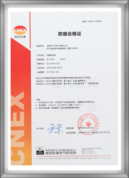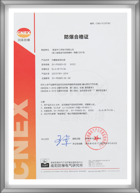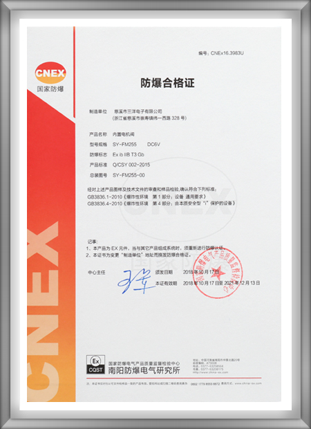 公司導(dǎo)入并實(shí)施卓越績(jī)效管理模式,建立并完善了內(nèi)部質(zhì)量、環(huán)境和安全管理體系,先后通過ISO9001:2015、ISO14001:2015、OHSAS18001:2007管理體系認(rèn)證和Intertek、cmlex防爆體系認(rèn)證。